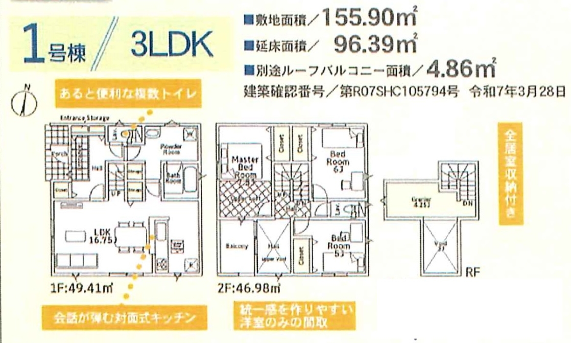特徴 2面採光 全室2面採光 24時間換気システム 高気密高断熱住宅 外壁サイディング 制震構造 閑静な住宅街分譲地内 設計住宅性能評価書 建設住宅性能評価書