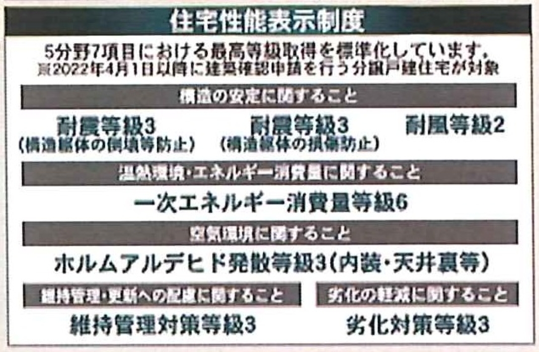 特徴 2面採光 24時間換気システム 高気密高断熱住宅 外壁サイディング 制震構造 整形地 閑静な住宅街 設計住宅性能評価書 建設住宅性能評価書 建築確認完了検査済証