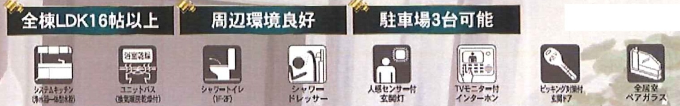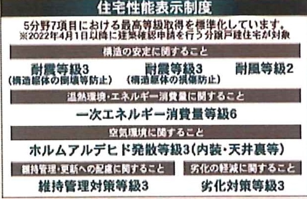 特徴 2面採光 全室2面採光 バリアフリー 24時間換気システム 高気密高断熱住宅 外壁サイディング 制震構造 整形地 閑静な住宅街 設計住宅性能評価書 建設住宅性能評価書